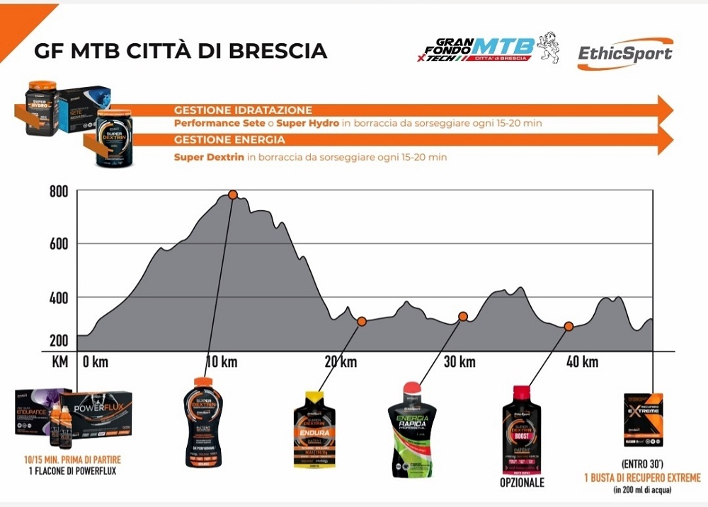 Per spiegare meglio l’utilizzo dei prodotti messi a disposizione da EthicSport durante la Granfondo Mtb XTech Città di Brescia, l’azienda leader nell’integrazione sportiva ci propone un esempio con un grafico.
