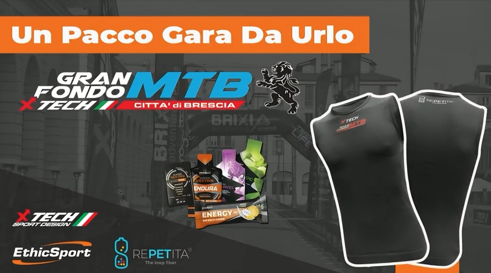 Ed ecco che da questa collaborazione ecologica e Made in Italy nasce la canotta griffata “Gran Fondo Mtb XTech Città di Brescia”, che, inserita nel pacco gara, potrà essere indossata anche lo stesso giorno della competizione.