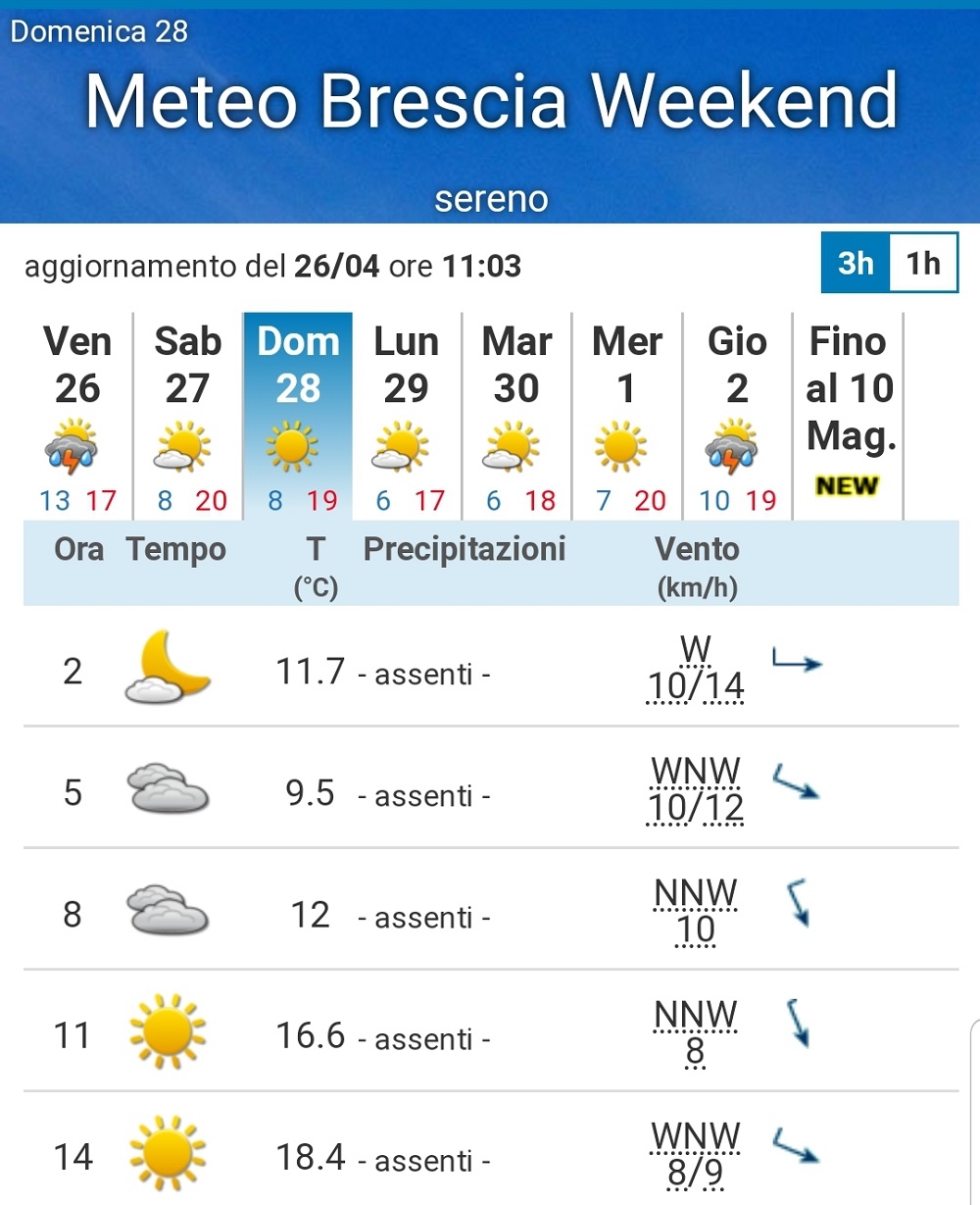 Ed ecco uno sguardo sul meteo previsto per domenica: dalle ore 5.00 alle ore 8.00 è previsto coperto con piogge assenti e temperature fino ai 12°, dalle 8.00 alle 17.00 sereno con piogge assenti e temperature fino 18°.