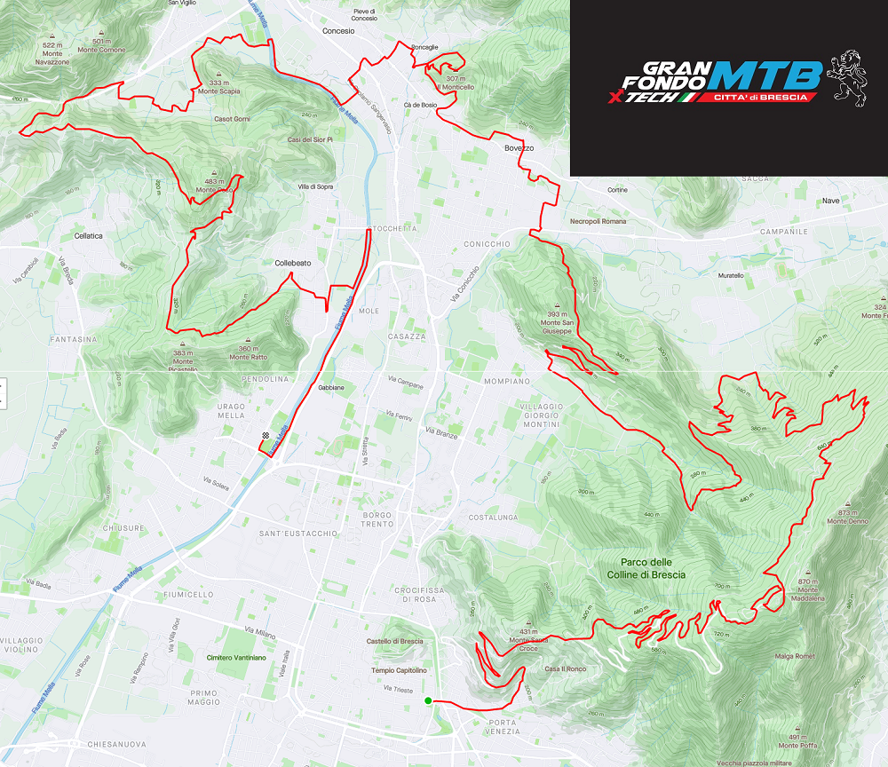 La gara, che partirà dal centro della bellissima e storica città di Brescia, cambia faccia, per regalarci un tracciato ancora rivoluzionato. I proprietari dei fondi privati si sono già espressi favorevolmente al transito, ed una vera novità sarà un nuovissimo sentiero ricavato interamente in una proprietà privata, concessa ai bikers appositamente in occasione della gara.